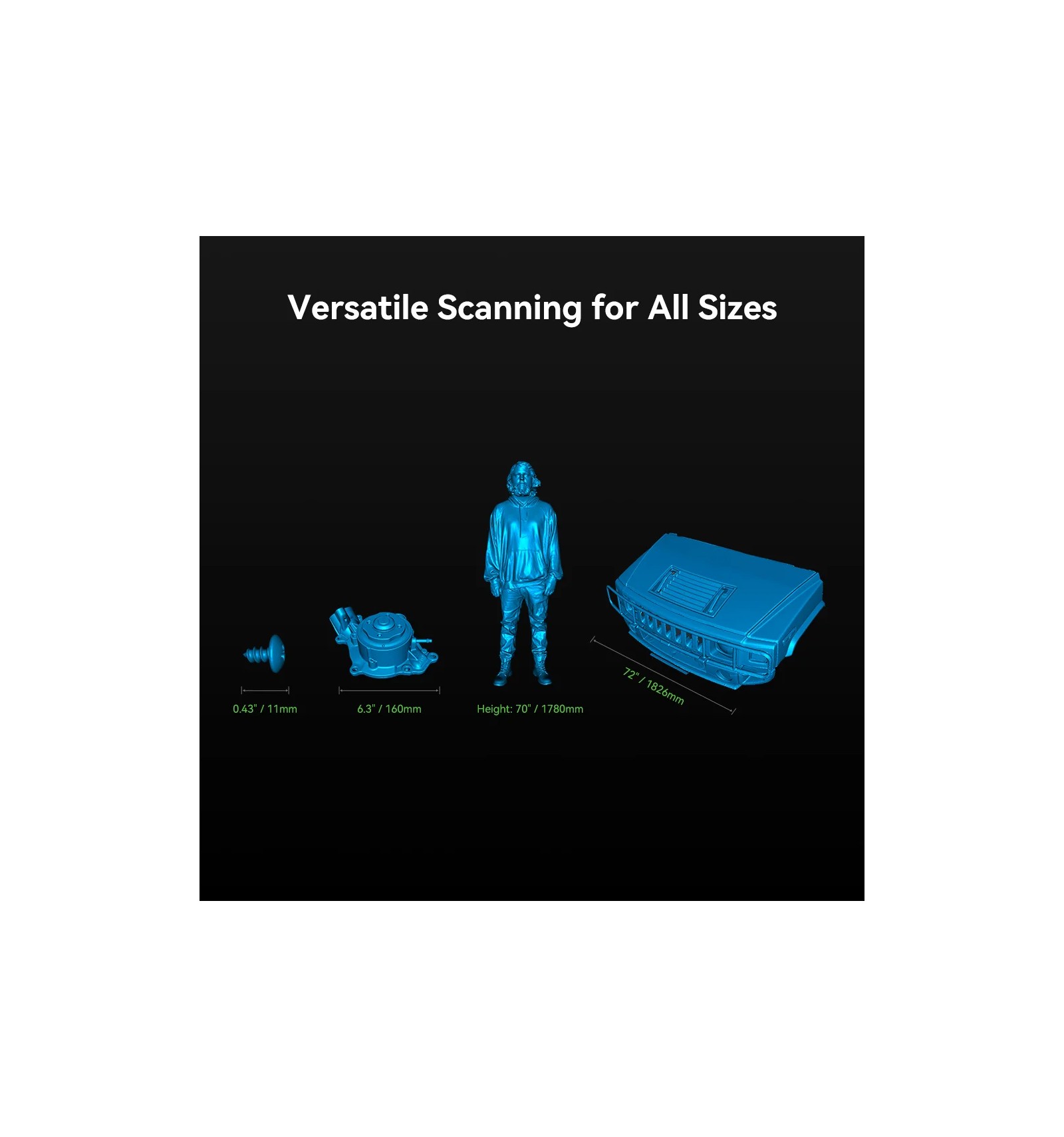 El CR-Scan Raptor integra una combinación innovadora de láser azul y fuentes de luz infrarroja, que cubre el escaneo de objetos pequeños, medianos y grandes, que puede satisfacer las necesidades de diversos escenarios de escaneo 3D industrial